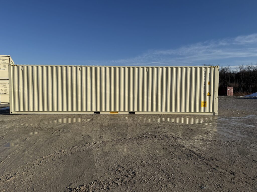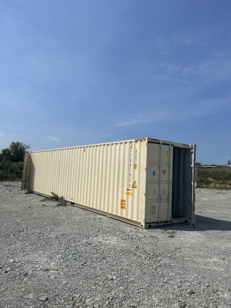 Name: 40′ New One Trip – Double Door Color: Beige Size: 40′ Condition: New One Trip This specialty unit is a 40ft high cube with 2 sets of doors on each end of the container. Please call for pricing.