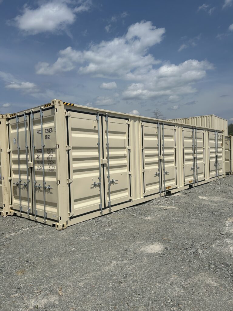 Name: 40′ New One Trip – 4 Door Color: Beige Size: 40′ Condition: New One Trip This specialty unit is a 40ft high cube with 4 sets of doors on the side, in addition to a set of doors on the end of the container. Please call for pricing.